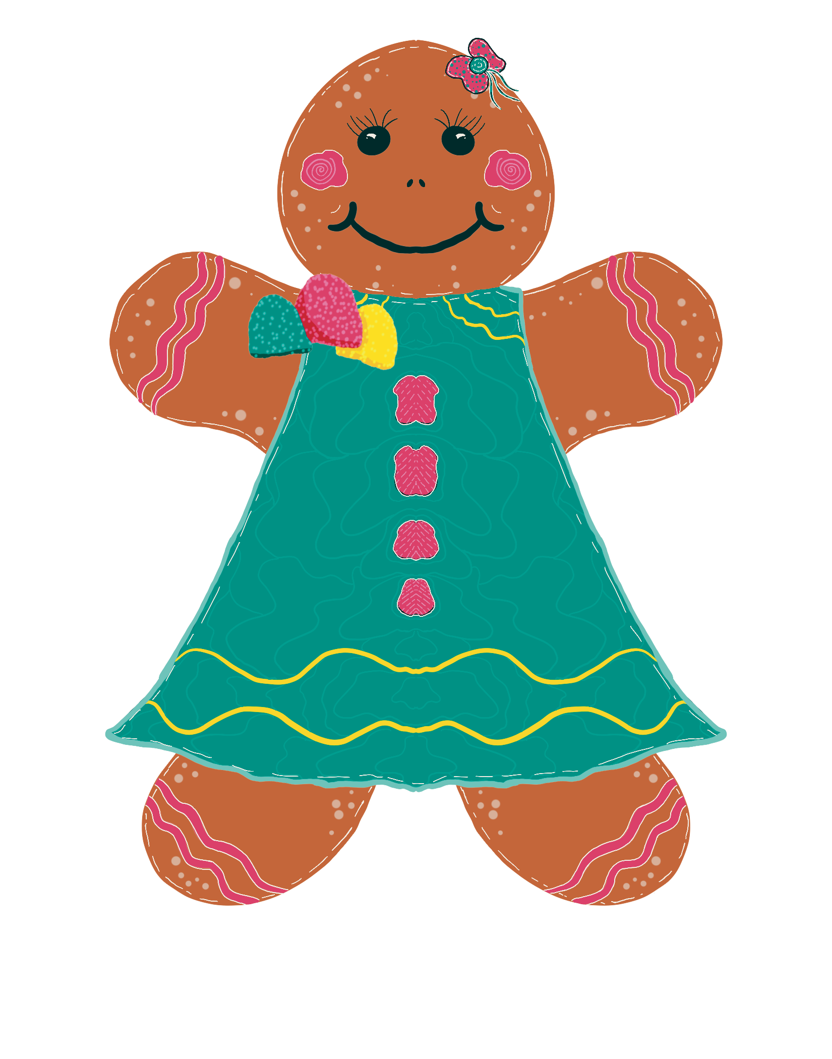The palette centers on berry pink, sugar-mint teal, gumdrop green, evergreen, and soft neutrals, giving the collection a cheerful blend of whimsy and warmth. Perfect for seasonal product lines such as fabric, stationery, giftware, home décor, kids’ apparel, paper goods, and craft products.