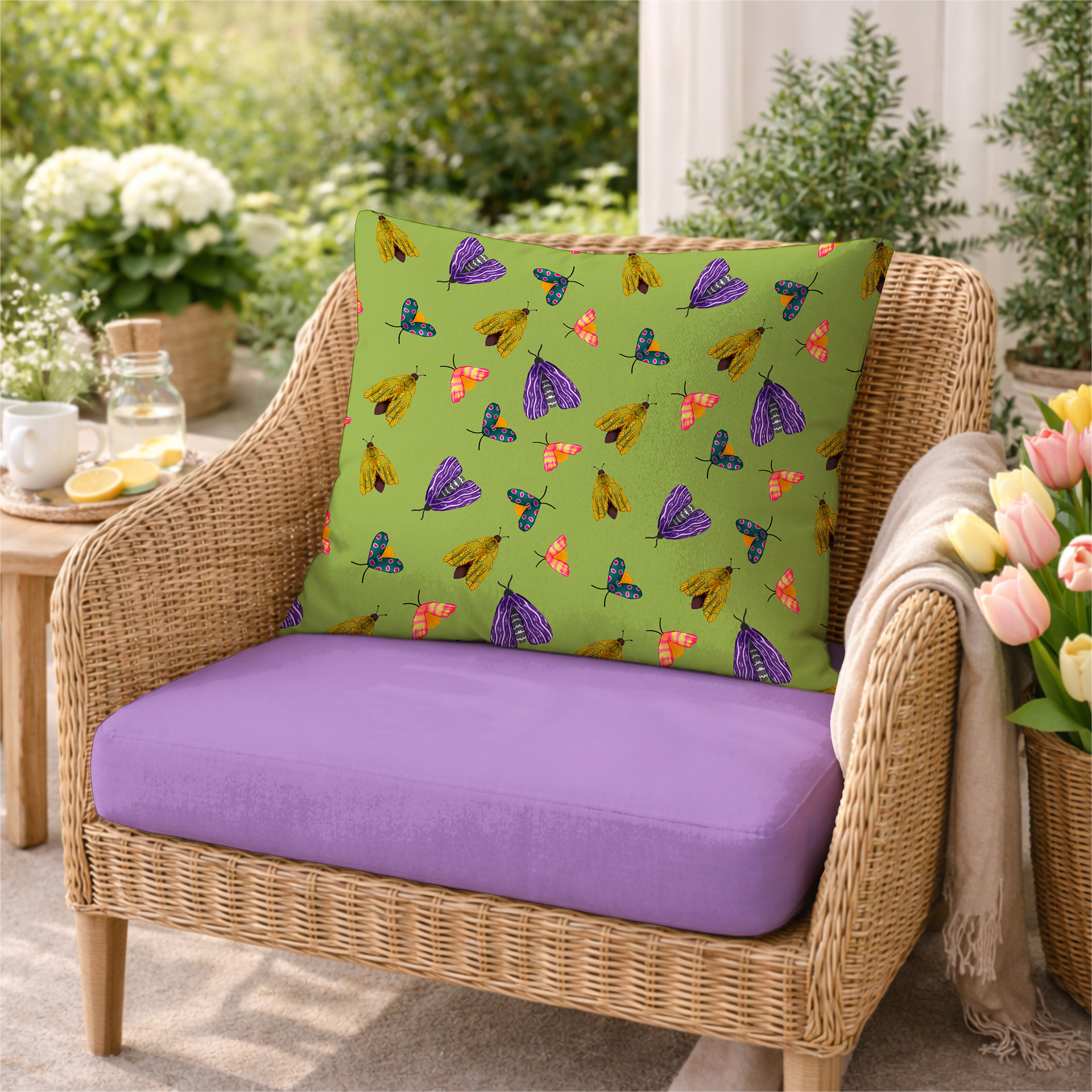 Moonbeams & Moths is a love letter to those glowing in-between hours. Where the air feels soft, the sky hums in quiet color, and everything seems just a little more magical. Moths drift like tiny paper spirits, drawn to light and mystery, while blooms open boldly under the moon as if they’ve been waiting all day to be seen.